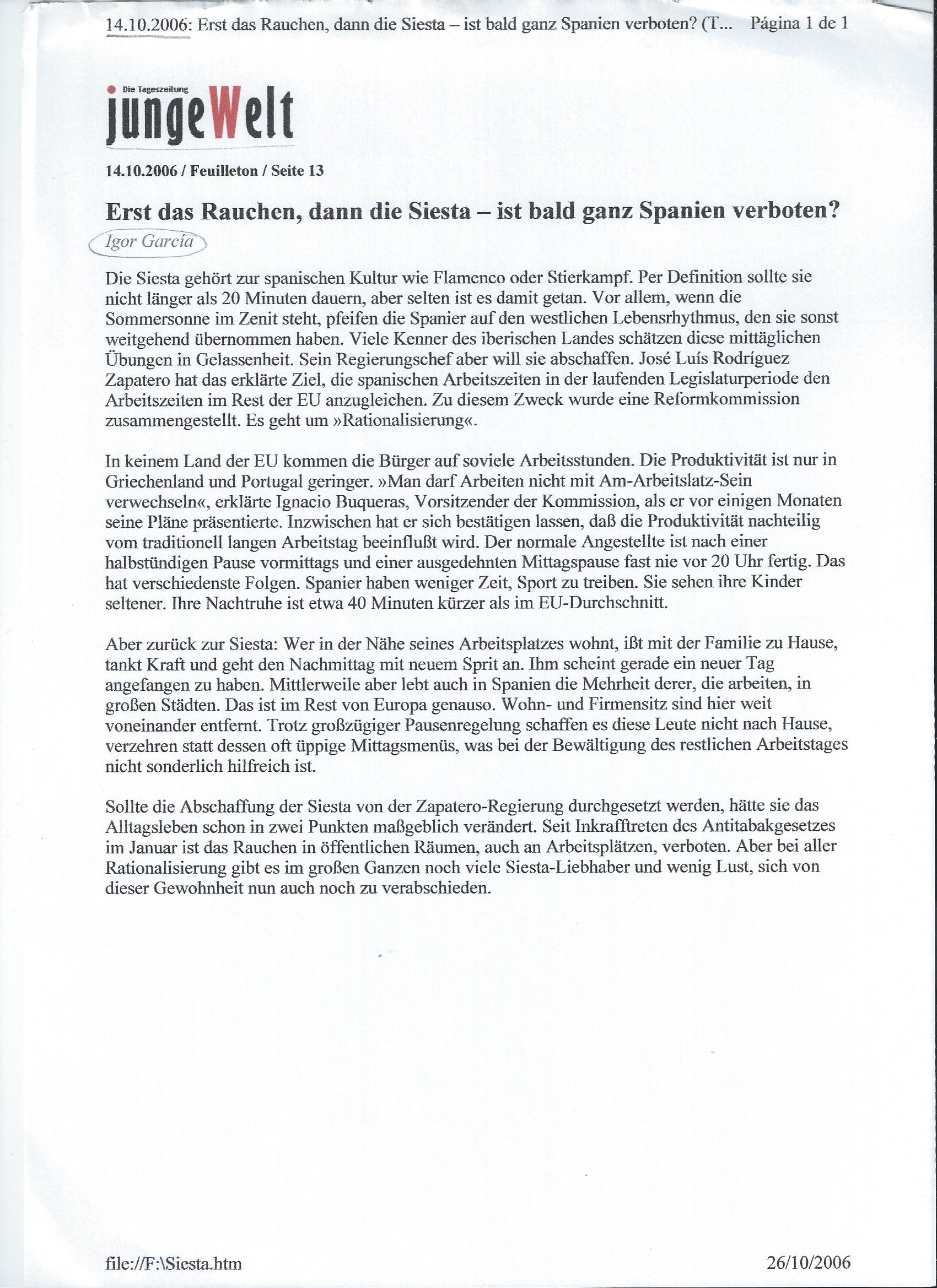 – Erst das Rauchen, dann die Siesta. Ist bald ganz Spanien verboten?