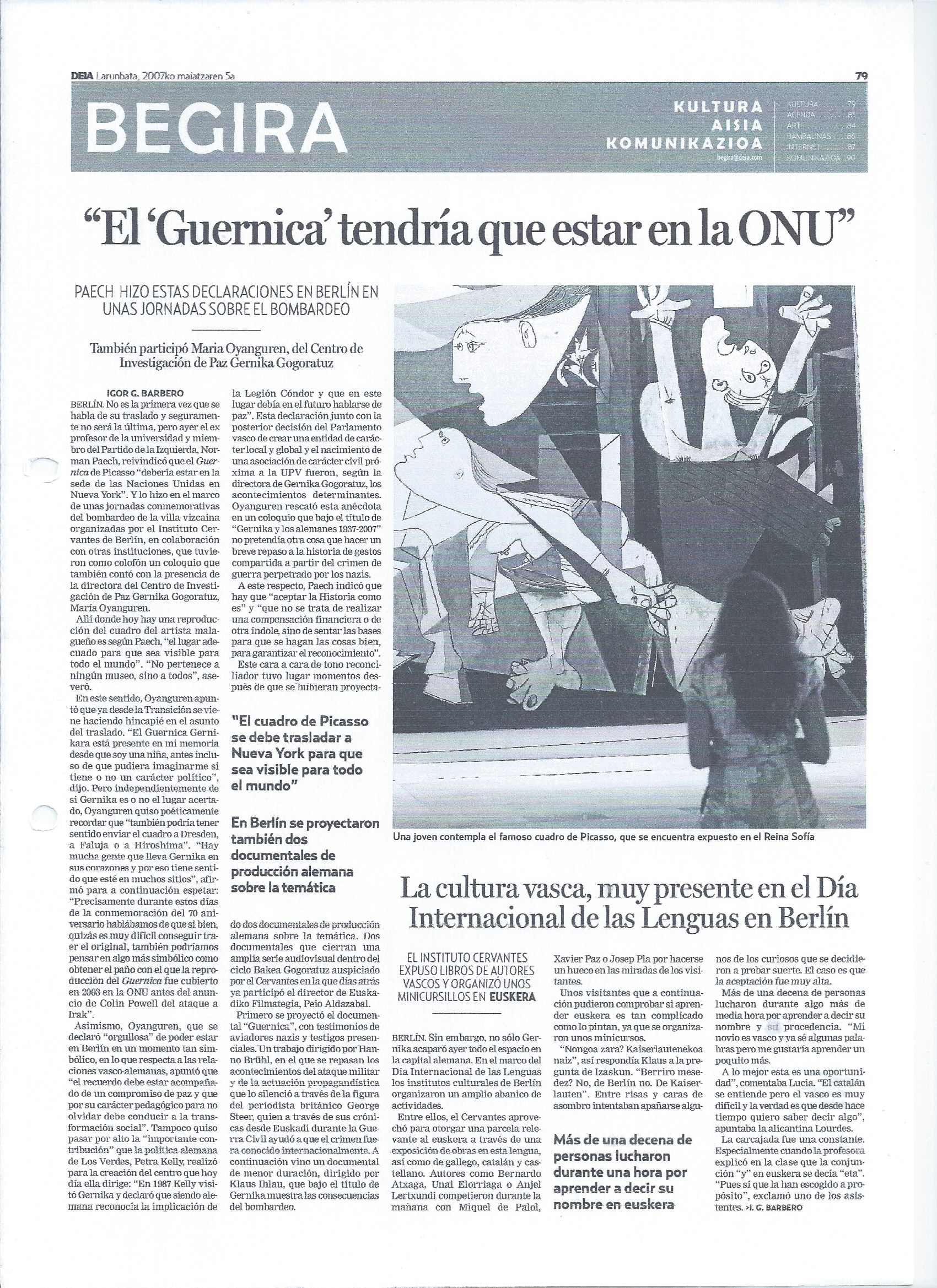 – El Guernica tendría que estar en la ONU