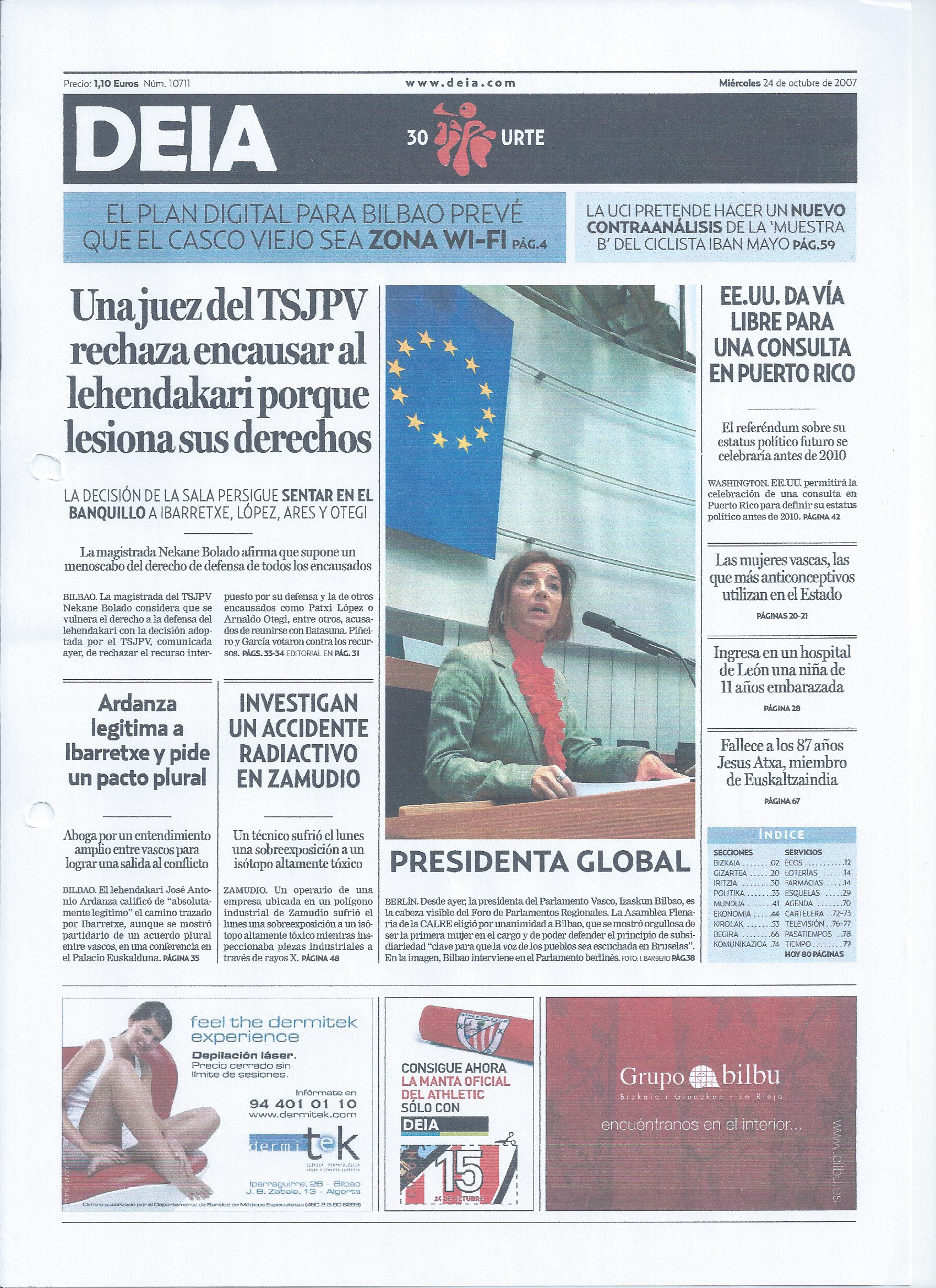 – Presidenta global (portada). La líder del PNV Izaskun Bilbao lidera un organismo regional europeo