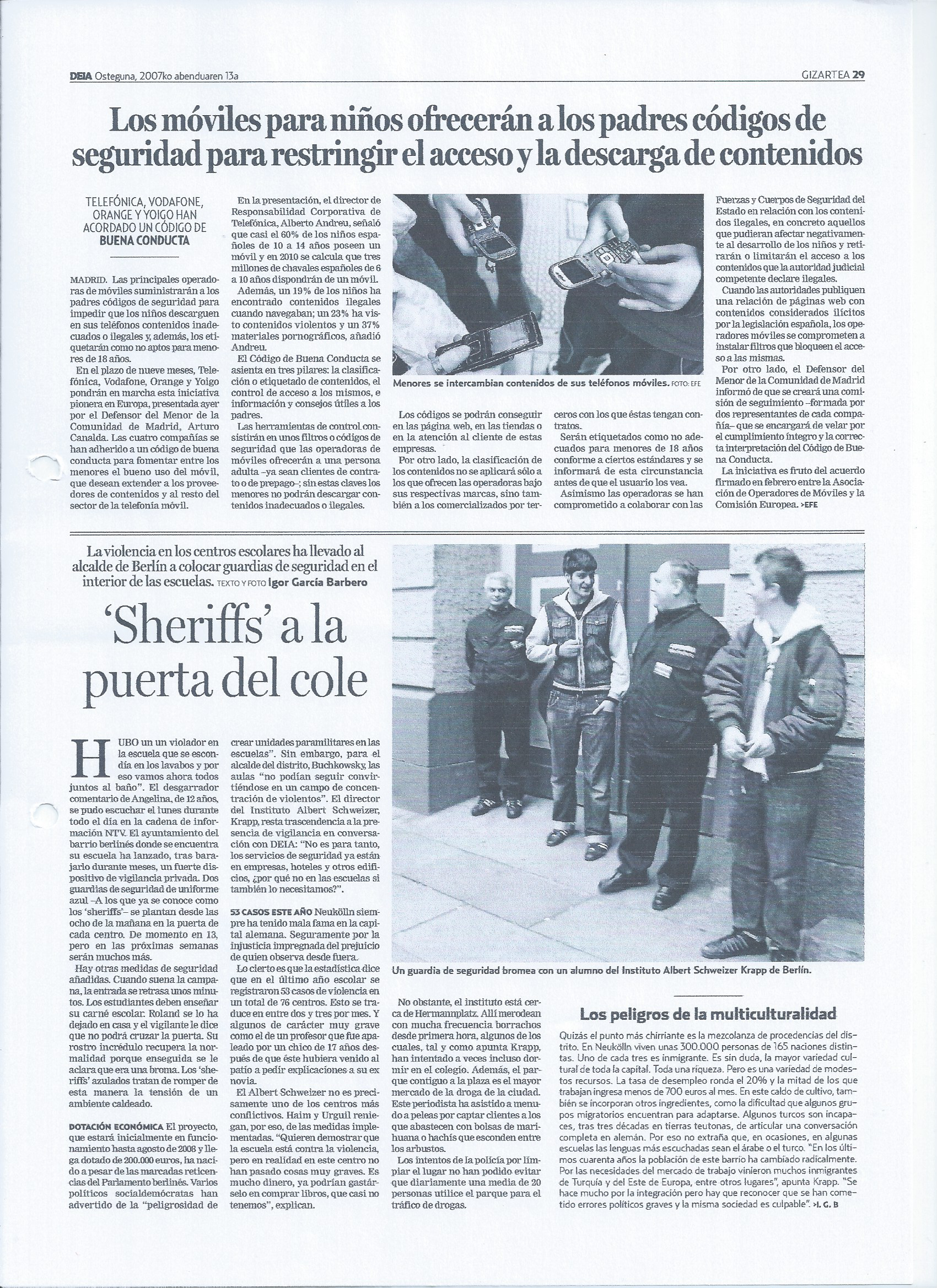 – Sheriffs a la puerta del cole. Medidas contra la violencia escolar en Alemania