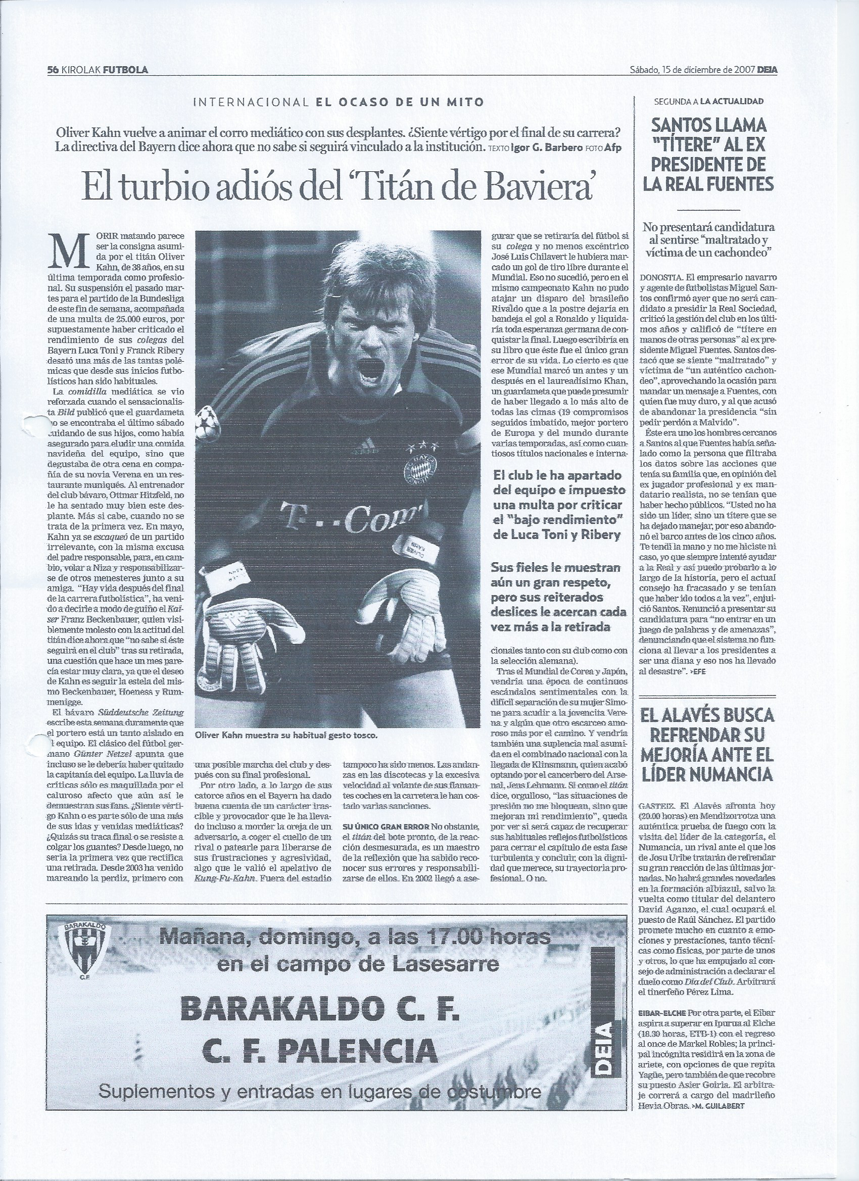 – El turbio adiós del Titán de Baviera. Oliver Khan se despide del fútbol
